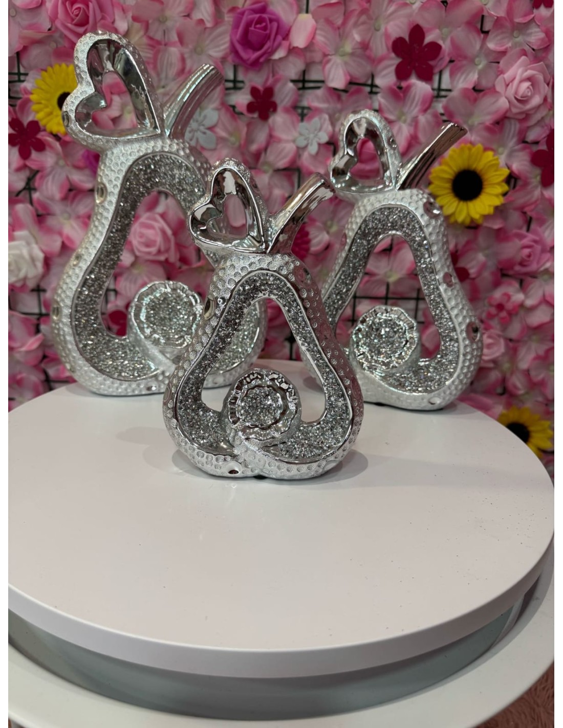 jugo de 3 PERAS plateadas con manzana de piedras dentro pequeñas el precio incluye juego de 3piezas puro lujo!!!!