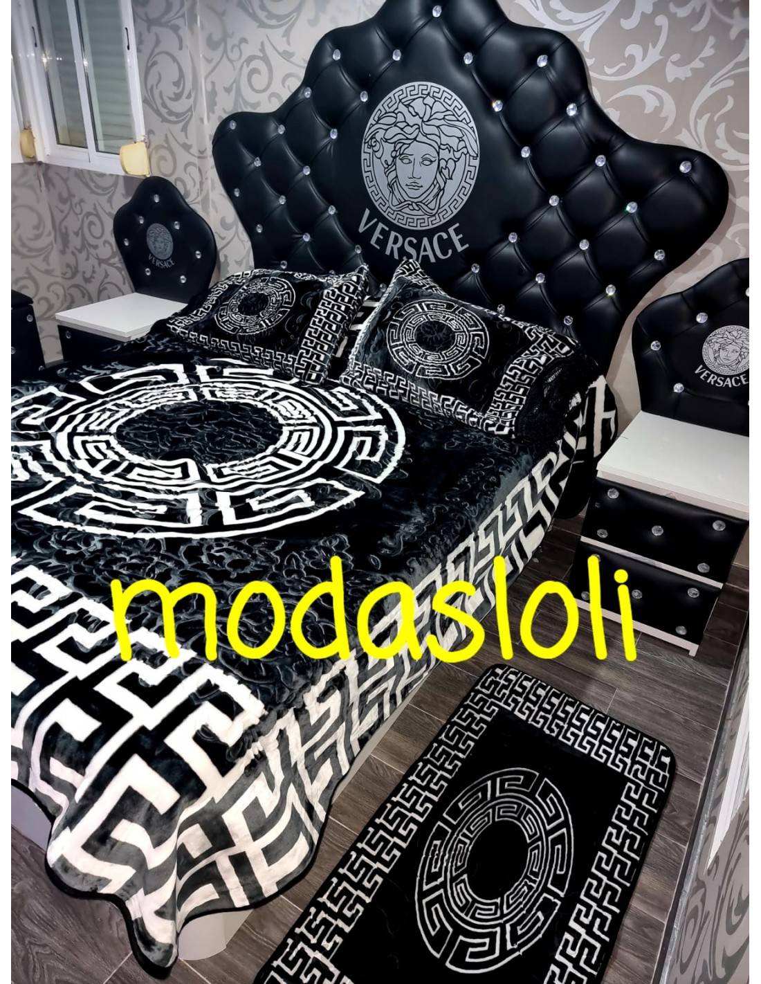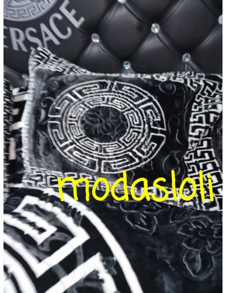 conjunto de Versace manta gorda buena con dos fundas de cojín y dos alfombras incluye 5 piezas en total todo de terciopelo y buena calidad manta mide 220x240