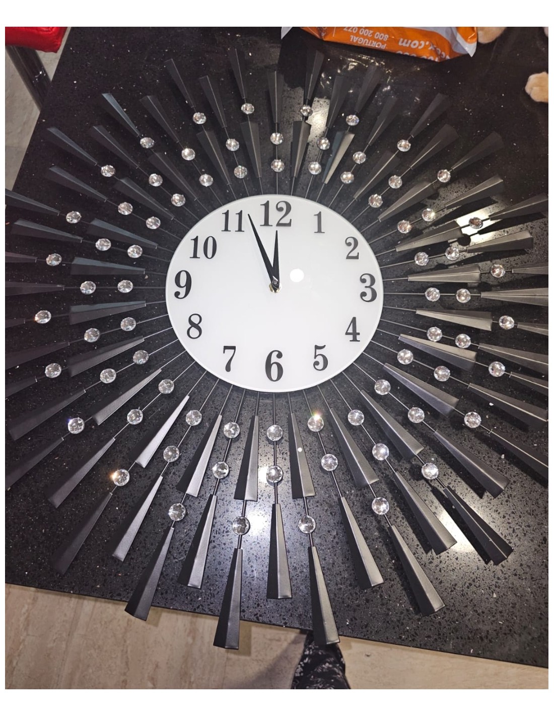 Reloj de pared medida de 70 x 70 cristal y hierro con piedras